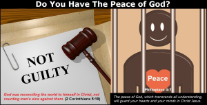 But what the Peace of God does do, is give us strength and joy once we are reconciled to God, even if we are sitting in a prison cell here on earth.