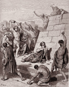 Martydom of Stephen. Acts 7:59-60. Illustration by Gustave Doré. 1890. Source [1].